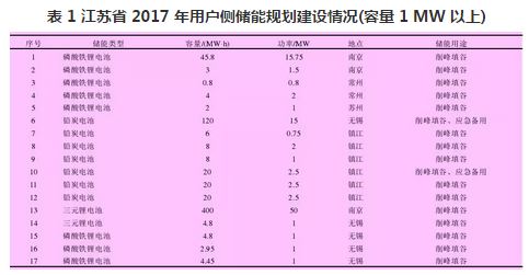 此外,在用戶側(cè)規(guī)劃儲能設(shè)備,不存在布點問題;并且因為我國目前實行分時電價和針對工商業(yè)用戶的兩部制電價政策,所以用戶側(cè)分布式儲能的引入多從經(jīng)濟性角度出發(fā),以減少電費或最大化收益為目標(biāo)開展儲能配置研究。江蘇 2017年用戶側(cè)分布式儲能規(guī)劃建設(shè)情況如表 1 所示。從表 1可以看出,當(dāng)前用戶儲能的建設(shè)目標(biāo)還是以需求響應(yīng)(價差套利)和提高供電可靠性為主,對電網(wǎng)的支撐作用主要是削峰填谷。