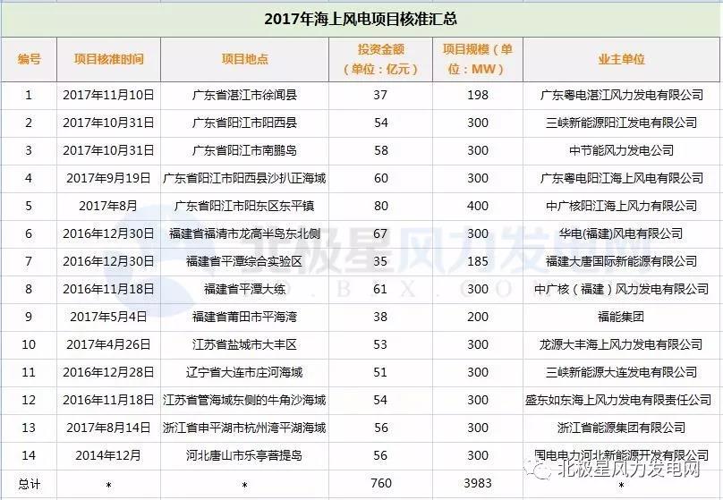 2017海上風(fēng)電項目統(tǒng)計簡圖