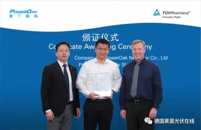 中國儲能網(wǎng)訊:12月1日,德國萊茵TüV集團(以下簡稱TüV萊茵)向深圳市德蘭明海科技有限公司(以下簡稱Poweroak德蘭明海)頒發(fā)了首張儲能系統(tǒng)的日本認證證書。TüV萊茵大中華區(qū)太陽能及燃料電池技術(shù)服務(wù)總經(jīng)理李衛(wèi)春,TüV萊茵大中華區(qū)周邊設(shè)備及電池總經(jīng)理歐樂富,及Poweroak德蘭明??偨?jīng)理劉旺達代表雙方企業(yè)出席了頒證儀式。