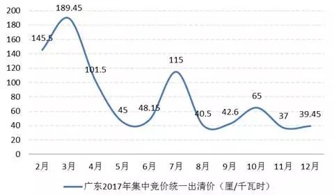 圖表七:廣東2017年集中競(jìng)價(jià)成交價(jià)格不斷收窄