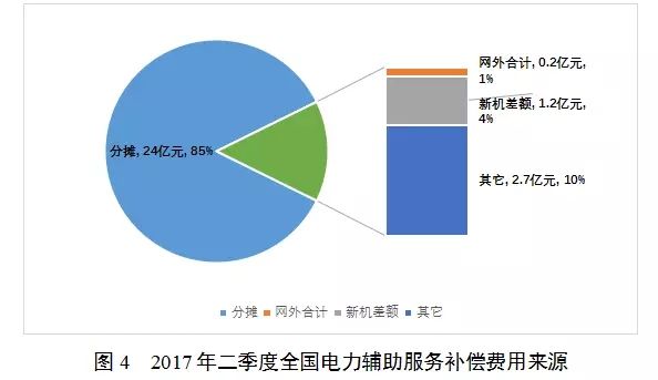 從電力輔助服務(wù)補(bǔ)償費(fèi)用來(lái)源來(lái)看,主要來(lái)自分?jǐn)傎M(fèi)用,合計(jì)24億元,跨省區(qū)輔助服務(wù)補(bǔ)償分?jǐn)偘l(fā)生費(fèi)用合計(jì)0.2億元,新機(jī)差額資金合計(jì)1.2億元,考核等其他費(fèi)用合計(jì)2.7億元,無(wú)分?jǐn)倻p免費(fèi)用。
