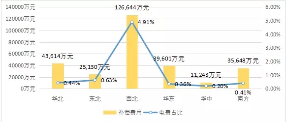 從電力輔助服務(wù)補(bǔ)償總費(fèi)用來(lái)看,二季度電力輔助服務(wù)補(bǔ)償費(fèi)用最高的三個(gè)區(qū)域依次為西北、華東和華北區(qū)域,西北區(qū)域電力輔助服務(wù)補(bǔ)償費(fèi)用在上網(wǎng)電費(fèi)總額的占比最高,為4.91%,華中區(qū)域占比最低,為0.2%。