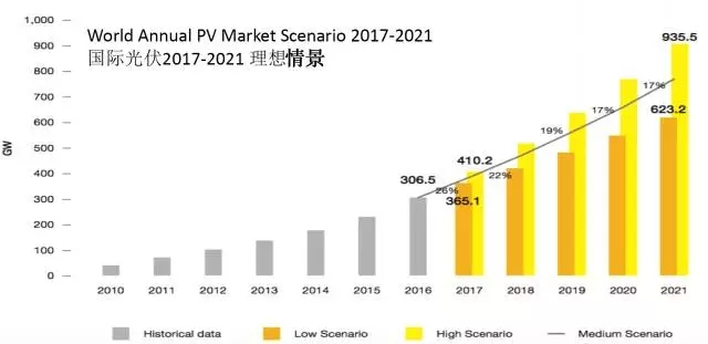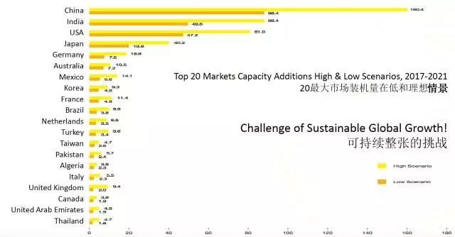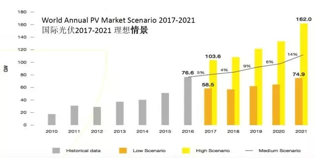 樂觀估計(jì),到2021年的年新增裝機(jī)可能達(dá)到162GW,是2016年的2倍以上!