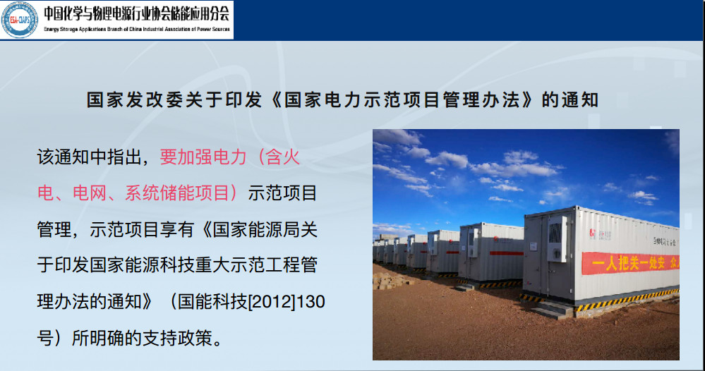 這是電力示范項(xiàng)目,這是比較重要的,所有項(xiàng)目里面含了儲(chǔ)能示范項(xiàng)目的管理,支持政策寫的很清楚,2012年發(fā)布的關(guān)于能源重大示范工程管理辦法通知里面已經(jīng)有了。