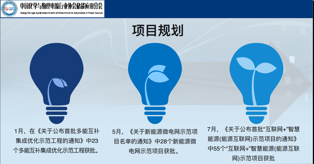 第二,項(xiàng)目規(guī)劃。截止到今年6月底,我們國(guó)家新增的和投運(yùn)的電化學(xué)儲(chǔ)能裝機(jī)規(guī)模達(dá)到1.4GW,是2000-2015年累計(jì)裝機(jī)規(guī)模的10倍增長(zhǎng),儲(chǔ)能應(yīng)用和社會(huì)效應(yīng)正逐步顯現(xiàn),經(jīng)濟(jì)性進(jìn)一步釋放出來(lái)。尤其是各類社會(huì)資本關(guān)注度正由觀望開(kāi)始邁入布局階段。我這兩天接過(guò)一些電話,包括一些央企,他們開(kāi)始對(duì)建立儲(chǔ)能的大的產(chǎn)業(yè)基金非常感興趣。國(guó)家儲(chǔ)能產(chǎn)業(yè)指導(dǎo)意見(jiàn)正式出臺(tái),為推動(dòng)儲(chǔ)能產(chǎn)業(yè)發(fā)展最后“一公里”破局增添了巨大動(dòng)力。我們5月份做過(guò)一個(gè)央視的對(duì)話,主要談電池和儲(chǔ)能的應(yīng)用。