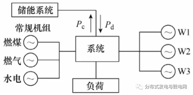 上述文獻(xiàn)在調(diào)度中對(duì)儲(chǔ)能與靈活常規(guī)電源水電、燃?xì)獾目紤]是分離的,然而在風(fēng)電大規(guī)模并網(wǎng)的形勢(shì)下,單純研究風(fēng)電與常規(guī)電源或者風(fēng)電與儲(chǔ)能的調(diào)度都具有一定的局限性。