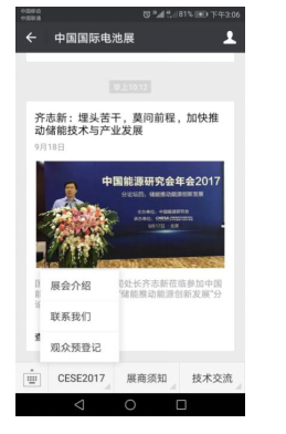 2.第二步請(qǐng)選擇公眾號(hào)中子欄目“CESE2017”欄目下的“觀眾預(yù)登記”。