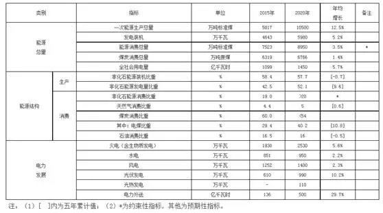 “十三五”時(shí)期能源發(fā)展主要目標(biāo)