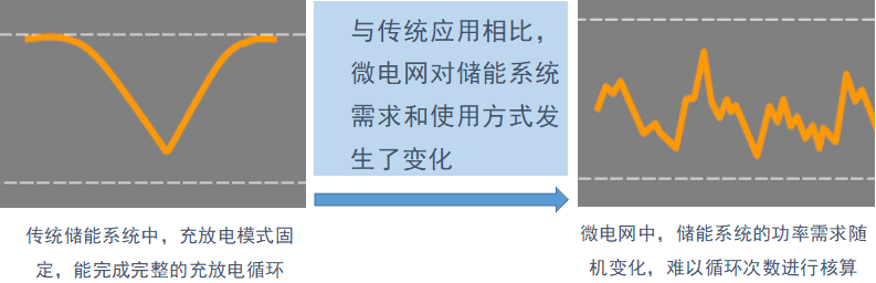所以,微電網中儲能系統(tǒng)選擇考慮兩個方面,一個是系統(tǒng)的需求,包括功率需求+能量需求,另一個是經濟性,即初始投資成本+運行使用成本。為什么提到運行使用成本?電池在使用過程中,如果管理不好,它是很容易壞的,同樣一組電池,在不同地控制策略的情況下,它的整個使用壽命可能50%都做不到,所以整個在過程中間,怎么進行實時管理非常重要。