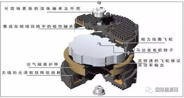 在一個(gè)飛輪儲(chǔ)能系統(tǒng)中,電能用于將一個(gè)放在真空外殼內(nèi)的轉(zhuǎn)子即一個(gè)大質(zhì)量的由固體材料制成的圓柱體加速(達(dá)幾萬(wàn)轉(zhuǎn)/分鐘),從而將電能以動(dòng)能形式儲(chǔ)存起來(lái)(利用大轉(zhuǎn)輪所儲(chǔ)存的慣性能量)。