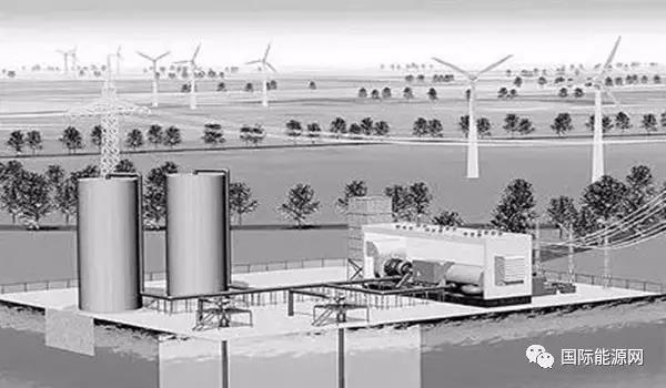 壓縮空氣儲(chǔ)能采用空氣作為能量的載體,大型的壓縮空氣儲(chǔ)能利用過(guò)剩電力將空氣壓縮并儲(chǔ)存在一個(gè)地下的結(jié)構(gòu)(如地下洞穴),當(dāng)需要時(shí)再將壓縮空氣與天然氣混合,燃燒膨脹以推動(dòng)燃?xì)廨啓C(jī)發(fā)電。