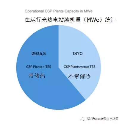 如下圖所示,在運行的光熱電站中配置儲熱系統(tǒng)的占比超過60%。如今,全球在建及規(guī)劃中的電站大部分選擇配置儲熱系統(tǒng),以達(dá)到最高效能。
