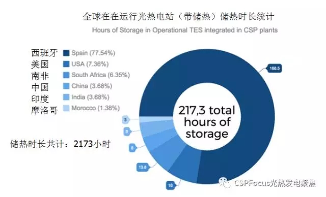 以下圖表為全球在運行的配備儲熱系統(tǒng)的光熱電站情況統(tǒng)計,大部分集中在老牌市場西班牙。以中國、中東、非洲為代表的新興市場在未來將占主導(dǎo)。