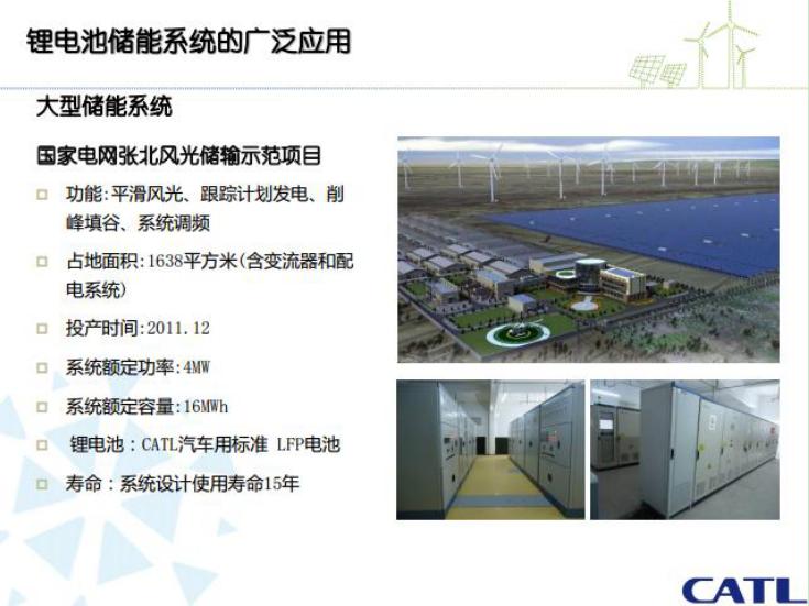 儲能主要在發(fā)電側(cè)、用電側(cè)、用戶側(cè)有廣泛的應(yīng)用,2011年公司在張北做的風(fēng)光儲輸?shù)氖痉俄椖浚偣?兆瓦、16兆瓦時,目前已經(jīng)運行了6年,現(xiàn)在使用效果還是比較好。