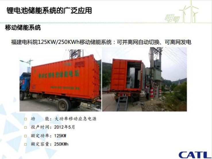 集裝箱式移動的儲能,2012年寧德新能源與電科院合作做的移動的應(yīng)急電源,可以替代柴油發(fā)電機。