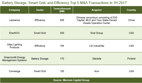 1-6月,智能電網(wǎng)在債務和公共市場融資900萬美元,僅有一例。同時,智能電網(wǎng)并購交易13個,去年同期僅為5個。