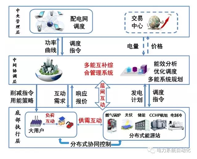 用戶(hù)側(cè)的靈活資源、分布式電源、儲(chǔ)能設(shè)備將得到更加廣泛的應(yīng)用,電、氣、冷、熱等多種能源形式在用能端的交叉耦合和相互轉(zhuǎn)換也將更為緊密,同時(shí)也為多元用戶(hù)主動(dòng)參與綜合能源系統(tǒng)互動(dòng)提供物質(zhì)基礎(chǔ),也促進(jìn)了能量流、信息流、業(yè)務(wù)流等特性各異的物理對(duì)象的融合。未來(lái)的綜合能源系統(tǒng)不再是由供給側(cè)到用戶(hù)側(cè)的單向能量傳遞,能源用戶(hù)也由過(guò)去的能源使用者轉(zhuǎn)換成能源消費(fèi)者和服務(wù)商,傳統(tǒng)能源系統(tǒng)中供給者、消費(fèi)者的概念被淡化,取而代之的是綜合能源系統(tǒng)供需雙側(cè)的智能交互。