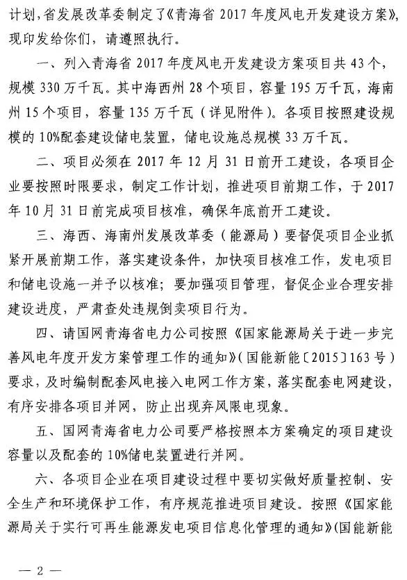 中國儲(chǔ)能網(wǎng)訊:近日,青海發(fā)改委印發(fā)了該省2017年3.3GW風(fēng)電開發(fā)建設(shè)方案(文件見后方),值得注意的是,各項(xiàng)目按照建設(shè)規(guī)模須配套10%的儲(chǔ)電裝置,儲(chǔ)電設(shè)施總規(guī)模為33萬千瓦(330MW)。此舉開創(chuàng)了可再生能源發(fā)展的新方向。由于風(fēng)電成本已經(jīng)下降至較低的水平,如果未來光伏電力成本也降至一定程度,或許西部限電地區(qū)也將采用這種方式進(jìn)行大規(guī)模發(fā)展。