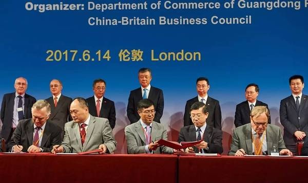 廣東省委書記胡春華(后排左三)和中國(guó)駐英大使劉曉明(后排左四)出席見證比亞迪與中航國(guó)際新能源發(fā)展有限公司、中航國(guó)際(英國(guó))公司三方簽約