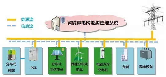 其中,能量管理系統(tǒng)是儲能系統(tǒng)的大腦,主要實現(xiàn)能量的合理調(diào)度,根據(jù)電網(wǎng)峰谷平特點,實現(xiàn)微網(wǎng)的經(jīng)濟運行,具有運行優(yōu)化、負荷預測、發(fā)電預測、微源調(diào)度、潮流控制等功能。