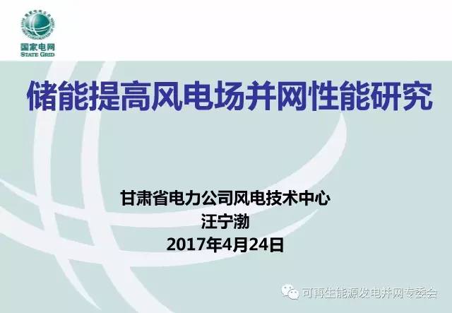 中國儲能網(wǎng)訊:2017年4月24日,第七屆中國國際儲能大會在蘇州召開,中國可再生能源學會可再生能源發(fā)電并網(wǎng)專委會(簡稱“并網(wǎng)專委會”)牽頭主辦了24日下午的新能源發(fā)電并網(wǎng)專場(平行會議三),邀請了并網(wǎng)專委會委員、甘肅省電力公司風電技術中心主任、甘肅省新能源并網(wǎng)運行控制重點實驗室主任汪寧渤在會上發(fā)表了題為《儲能提高風電場并網(wǎng)性能研究》的演講。 在征求汪主任同意后,將主要內(nèi)容分享如下。
