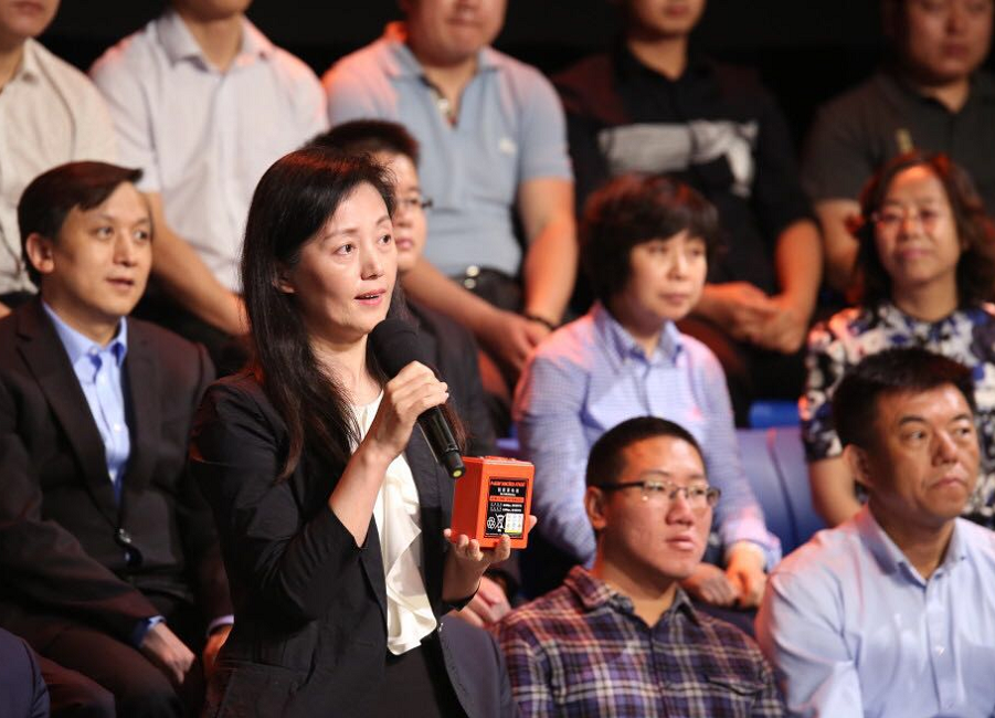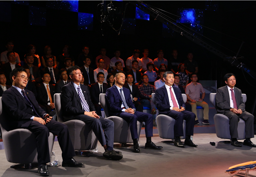 主持人陳偉鴻與對(duì)話嘉賓珠海格力電器股份有限公司董事長兼總裁董明珠、珠海銀隆新能源股份有限公司董事長魏銀倉與現(xiàn)場其他嘉賓互動(dòng)交流。
