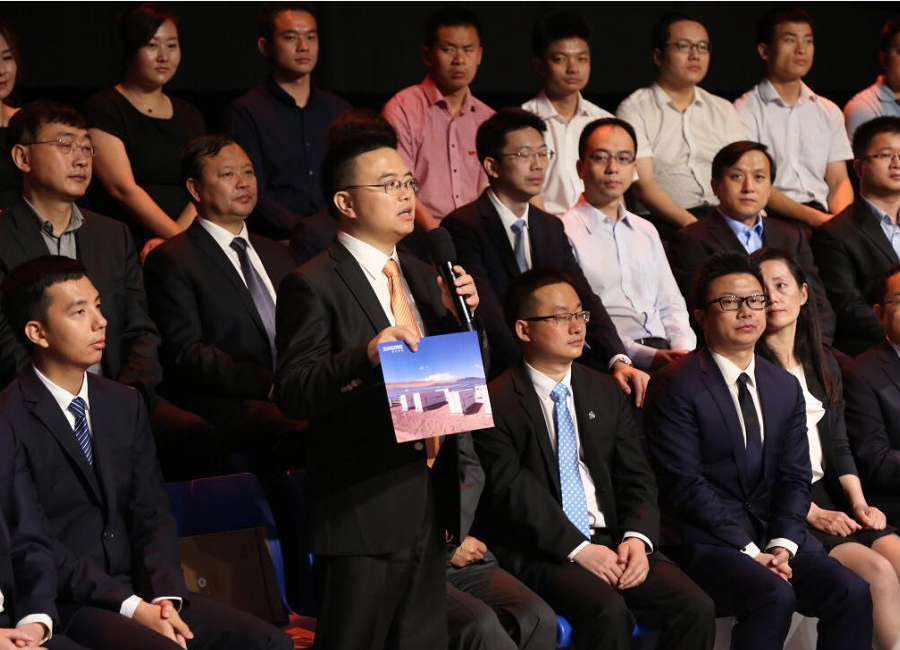 中天科技集團(tuán)新能源產(chǎn)業(yè)總經(jīng)理曹紅彬,現(xiàn)場展示了光儲(chǔ)充一體化示范項(xiàng)目模型。