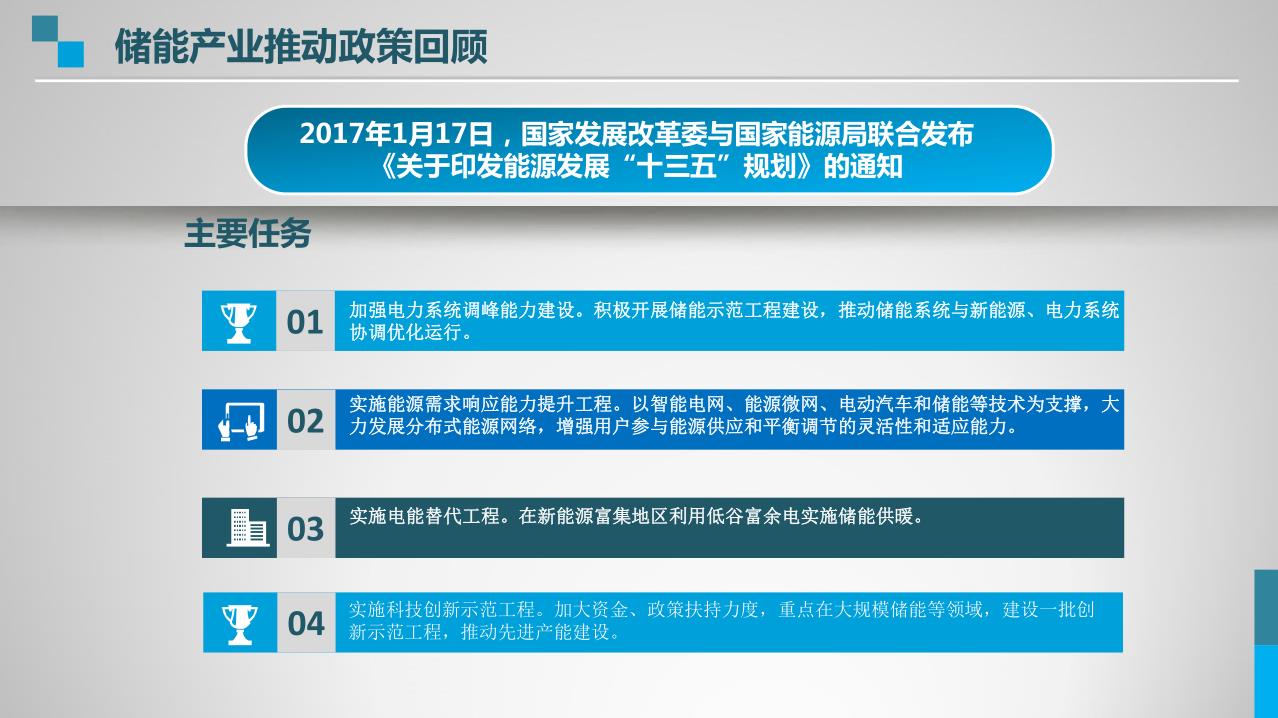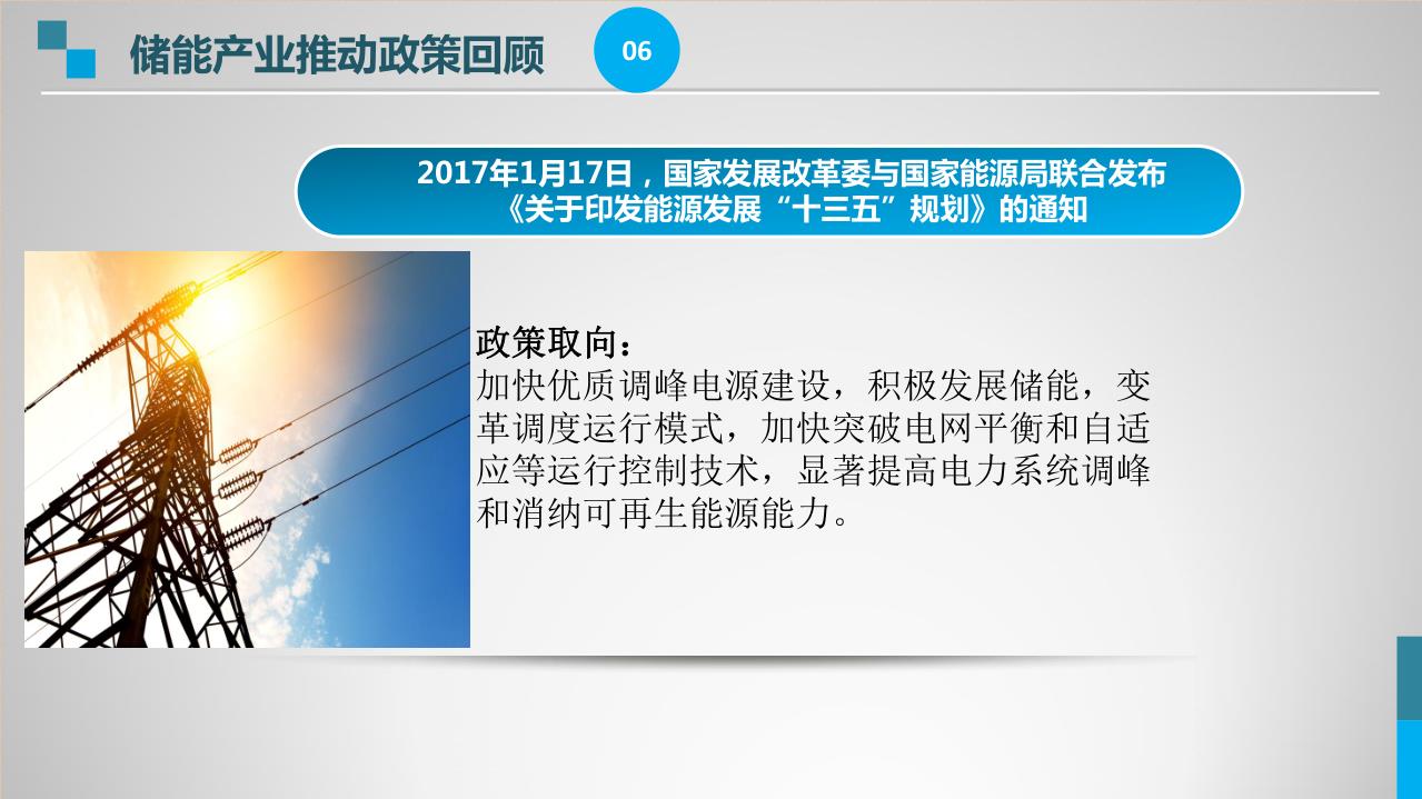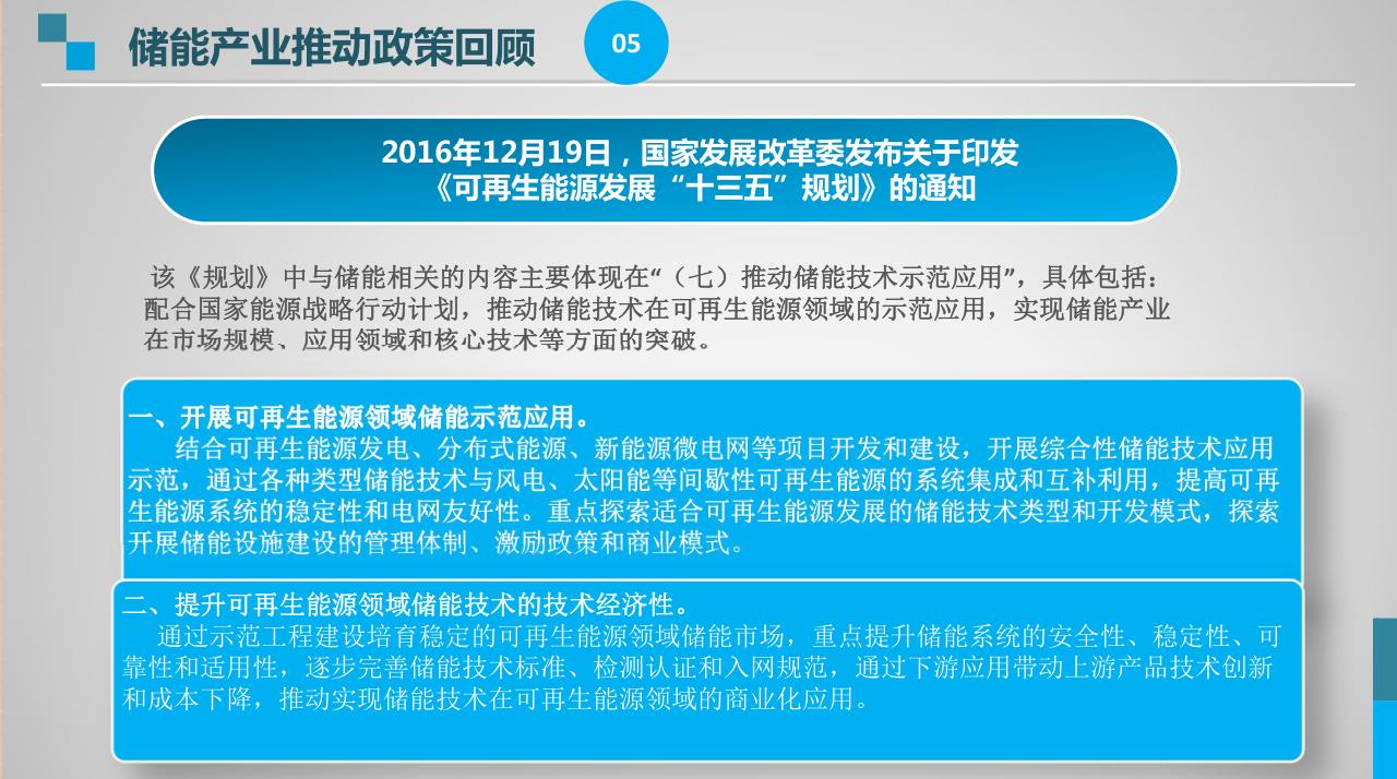 這是國(guó)家發(fā)改委關(guān)于能源十三五的規(guī)劃,在這個(gè)政策里面也提到了關(guān)于加快優(yōu)質(zhì)調(diào)峰電源建設(shè),積極發(fā)展儲(chǔ)能。