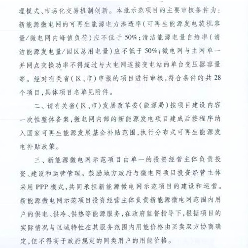 中國儲(chǔ)能網(wǎng)訊:日前,國家發(fā)改委、國家能源局下發(fā)《關(guān)于新能源微電網(wǎng)示范項(xiàng)目名單的通知》,28個(gè)新能源微電網(wǎng)示范項(xiàng)目獲批。這批項(xiàng)目帶來的新增光伏裝機(jī)為899MW,新增的電儲(chǔ)能裝機(jī)超過150MW,此外,各種熱儲(chǔ)能、風(fēng)電等其他類型能源也都有體現(xiàn)。此舉將對中國的分布式光伏、儲(chǔ)能帶來巨大推動(dòng)。