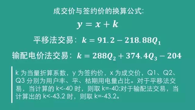 這樣也就產(chǎn)生了一個豐、平、枯三個時間的電量計算問題,公告中給出了集中競價階段平移交易法和輸配電價法交易的解釋及計算公式。
