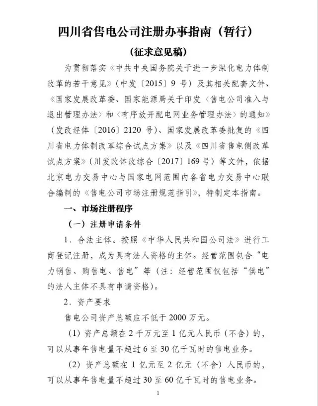 4月26日,《四川省售電公司注冊辦事指南(暫行)》發(fā)布征求意見稿(文末附文件全文),經(jīng)過晶見工作室與《售電并公司市場注冊規(guī)范指引》對比,發(fā)現(xiàn)其基本沒有太大的改動。