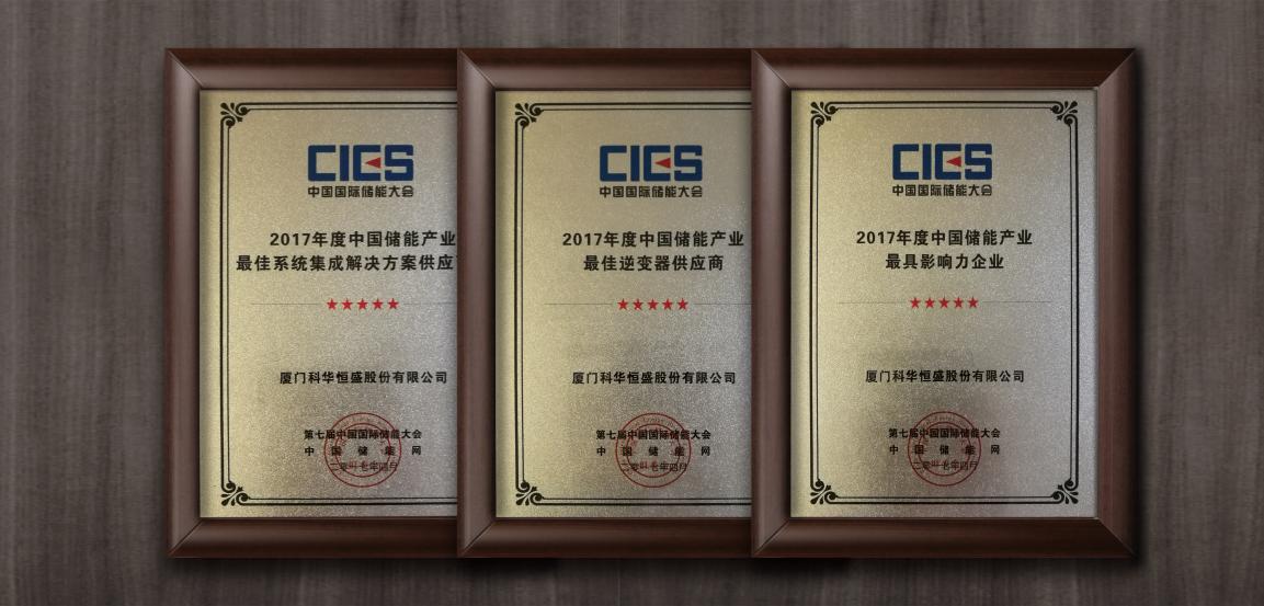 現(xiàn)時,儲能市場仍是“群雄爭霸”的局面,科華恒盛的發(fā)展理念始終不偏不倚,堅持穩(wěn)健而不盲從。在本屆儲能大會上公布的系列獎項中,科華恒盛榮獲2017年度中國儲能產(chǎn)業(yè)“最具影響力企業(yè)”“最佳系統(tǒng)集成解決方案供應(yīng)商獎”“最佳逆變器供應(yīng)商”三項大獎。