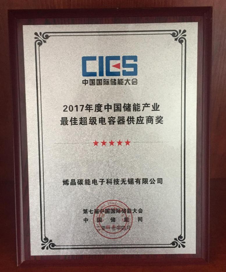 烯晶碳能斬獲2017年度中國儲能產(chǎn)業(yè)最佳超級電容器供應(yīng)商獎