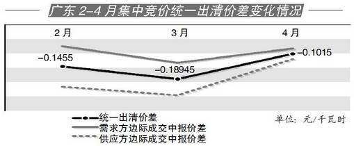截至目前,廣東省今年已開展三輪月度電量集中競價交易。2月、3月電力競價接連爆出-0.1455元/千瓦時和-0.18945元/千瓦時的統(tǒng)一出清價差,為了爭奪電量,供應側(cè)降價幅度已近極限。而在3月28日,4月月度集中競價結(jié)束后,統(tǒng)一出清價差鎖定在-0.1015元/千瓦時,前兩輪的“慘烈”競爭態(tài)勢終于有所緩和,報價逐漸趨于理性。