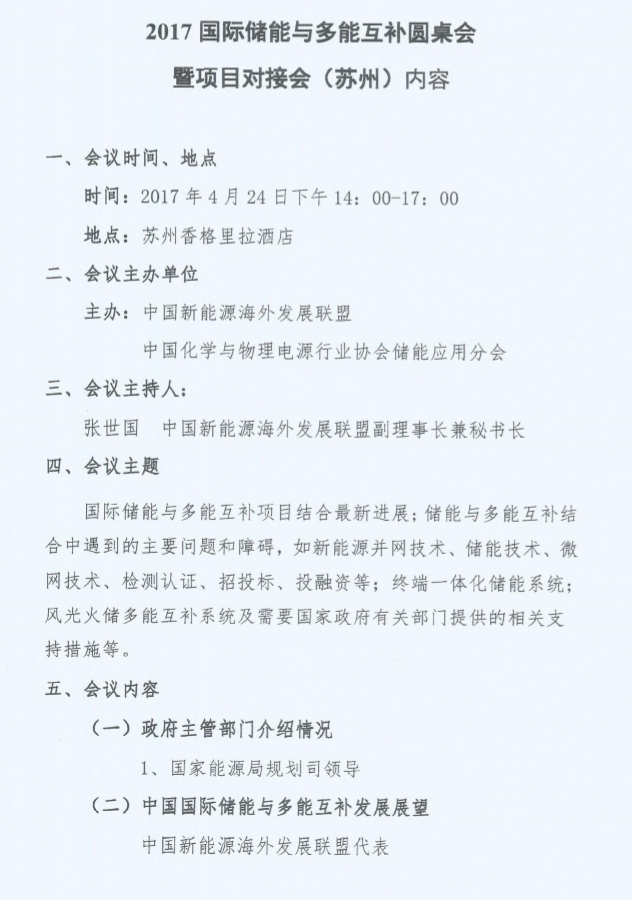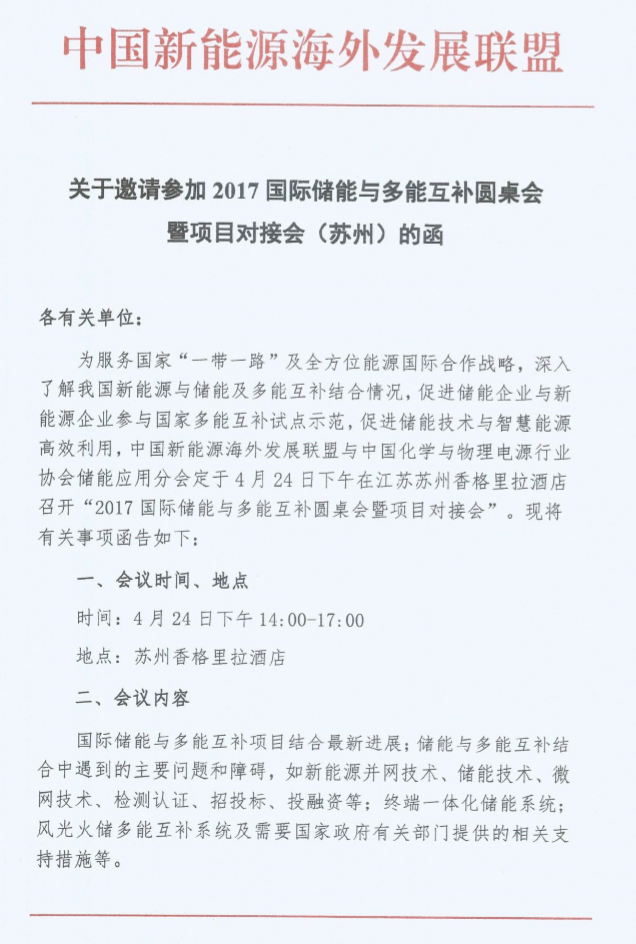 關(guān)于邀請(qǐng)參加2017國際儲(chǔ)能與多能互補(bǔ)圓桌會(huì)