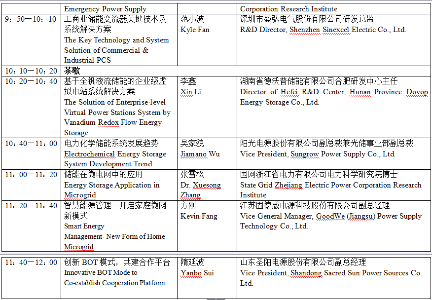以下為儲(chǔ)能電站&微電網(wǎng)專(zhuān)場(chǎng)專(zhuān)場(chǎng)具體議程安排。