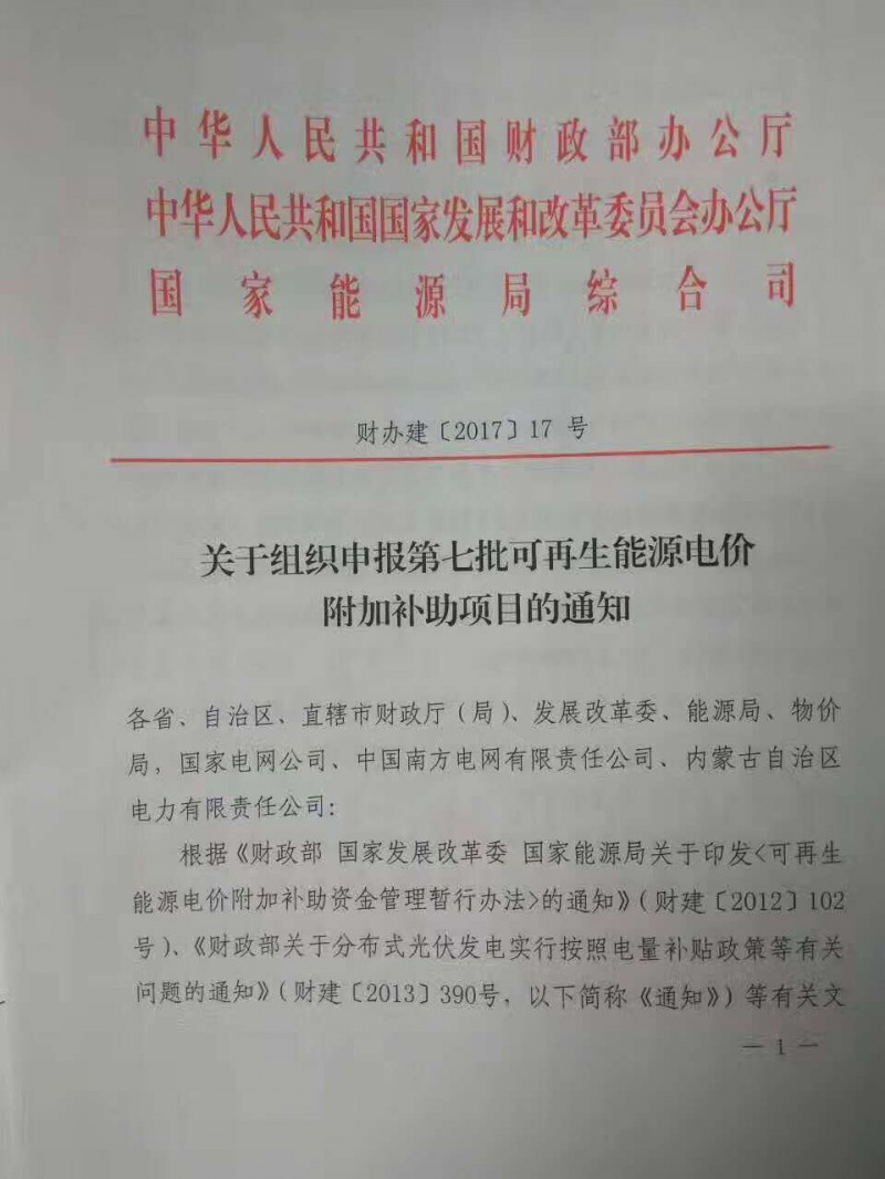 中國(guó)儲(chǔ)能網(wǎng)訊:財(cái)辦建〔2017〕17號(hào)