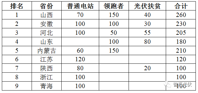 2)消化2016年遺留的、已開工但無指標(biāo)的項(xiàng)目;這類項(xiàng)目,大約有4GW左右在2017年上半年建成。從各省的增補(bǔ)指標(biāo)就可以看出熱點(diǎn)地區(qū),如下表所示。