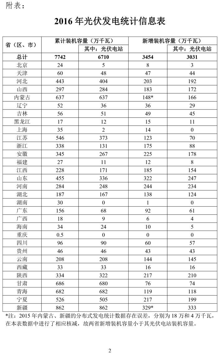 附表:2016年光伏發(fā)電統(tǒng)計(jì)信息表