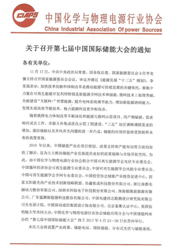 2017第七屆中國國際儲能大會將在蘇州舉行