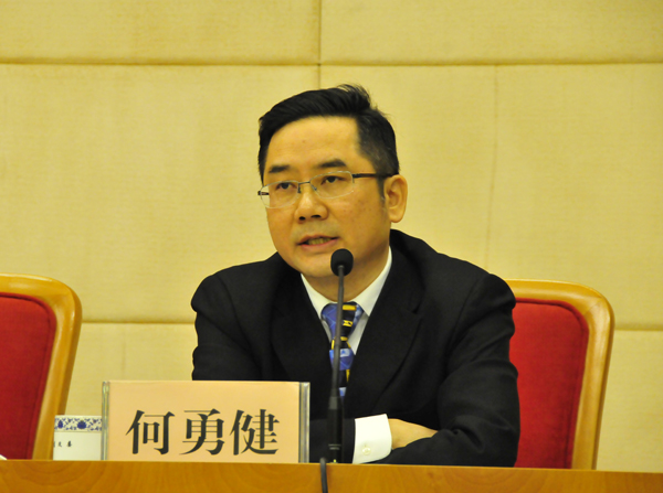 圖為發(fā)展規(guī)劃司副司長何勇健回答記者提問。