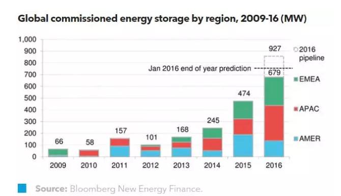 歐洲地區(qū):2016年,英國容量市場T-4拍賣中共拍出501MW儲能容量,規(guī)模超過歐洲其他市場。德國與意大利市場中的離網(wǎng)儲能容量仍在繼續(xù)盈利。