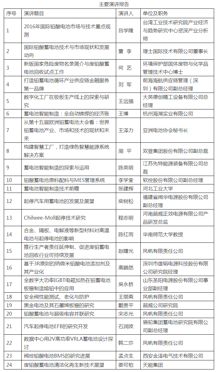 中國化學(xué)與物理電源行業(yè)協(xié)會于12月15-16日在西安舉辦的“2016年中國國際鉛酸蓄電池高峰論壇”,邀請了24位專家與大家分享在鉛酸蓄電池市場與新技術(shù)進(jìn)展、自動化改造和智能制造、回收再生利用等多個領(lǐng)域的最新進(jìn)展和應(yīng)對之策。