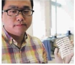 研究員吳聰聰和可回收人造光的柔性太陽(yáng)能板