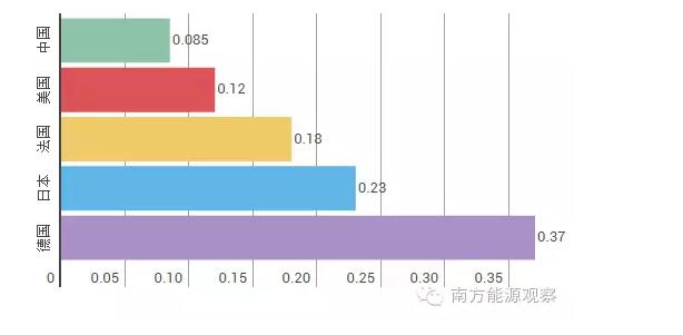 其中,工商業(yè)電價處于中等水平。中國工商業(yè)電價為每千瓦時0.102美元,高于美國(0.07美元)、越南(0.08美元)、韓國(0.08美元),但低于德國(0.16美元)、法國(0.12美元)、日本(0.16美元)等國家。