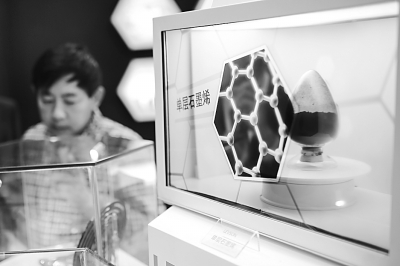2015中國(guó)國(guó)際石墨烯創(chuàng)新大會(huì)上展示的石墨烯分子結(jié)構(gòu)。解豪攝/光明圖片