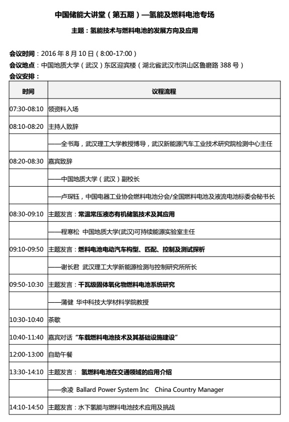 中國(guó)儲(chǔ)能大講堂之氫能及燃料電池專(zhuān)場(chǎng)最新議程及參會(huì)名單