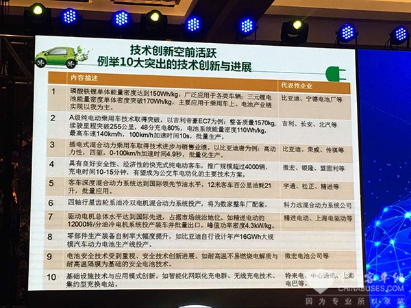 前面講了概念,這張表就突出把技術(shù)創(chuàng)新的成果,我自己收集的舉了10個或者我說的10大創(chuàng)新,不一定有權(quán)威性,權(quán)威性的應(yīng)該是社會來說,我建議以后可以做這個工作,權(quán)威機構(gòu)來頒布2015年新能源汽車幾大創(chuàng)新, 這是我自己的創(chuàng)新,我就不一一講了。
