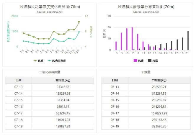 做好風(fēng)機(jī)發(fā)電能力預(yù)估是并網(wǎng)穩(wěn)定運(yùn)行和有效消納的重要條件,能量魔方在全國(guó)900多座專業(yè)氣象站的實(shí)時(shí)數(shù)據(jù)與數(shù)值天氣象預(yù)報(bào)的深度同化的基礎(chǔ)上,通過(guò)精準(zhǔn)坐標(biāo)點(diǎn)定位風(fēng)場(chǎng)位置,再根據(jù)其地理位置、發(fā)電設(shè)備和電場(chǎng)信息,由高精度數(shù)值天氣預(yù)報(bào)系統(tǒng)和預(yù)測(cè)功率系統(tǒng)準(zhǔn)確的預(yù)測(cè)電場(chǎng)未來(lái)七天的理論發(fā)電功率變化曲線、累計(jì)理論發(fā)電量、風(fēng)速、溫度節(jié)煤量、CO?減排量等重要參考指標(biāo)。