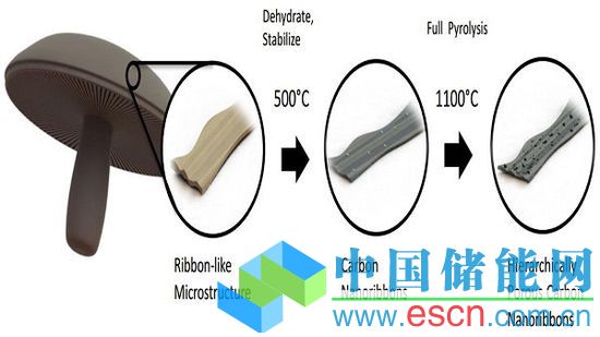 研究團隊發(fā)現(xiàn),從大褐菇頂帽上提取的表皮、再將它加熱至500℃(932℉),就可以轉(zhuǎn)換成一種自然衍生而來的類碳納米帶結(jié)構(gòu)。